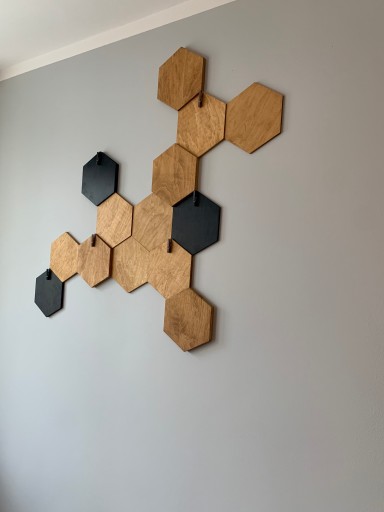 - Dekoracja ścienna wykonana ze sklejki. Nadaje ciekawy charakter pomieszczeniu.