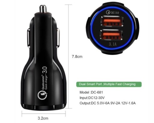 АВТОМОБИЛЬНОЕ ЗАРЯДНОЕ УСТРОЙСТВО 3.1A LED QUICK CHARGE 3.0