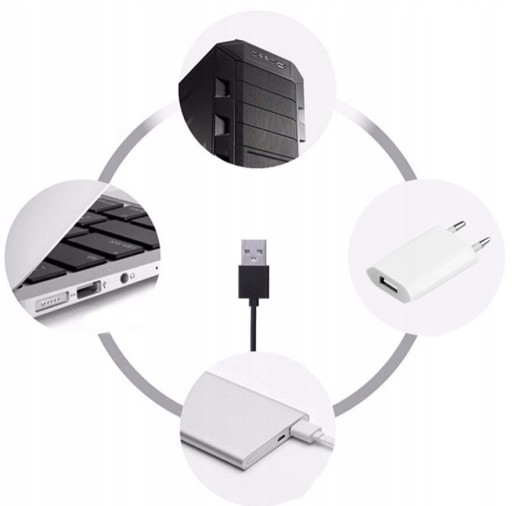 Zasilanie: Lampka zasilana kablem USB dołączona w zestawie) Lampkę można podłączyć do gniazdka USB komputera lub zwykle do kontaktu