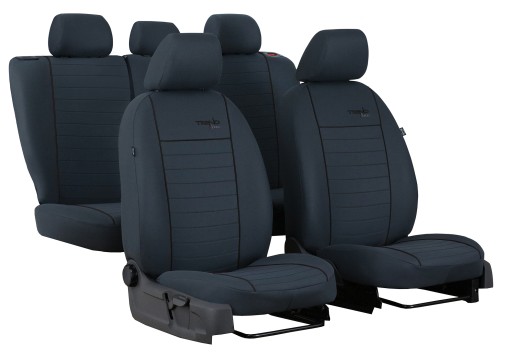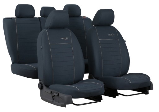 Pokrowce TREND LINE wykonane są z dzianiny tapicerskiej w kolorze ciemny grafit – nowością w ofercie jest tłoczona faktura materiału zastosowanego na pas środkowy.