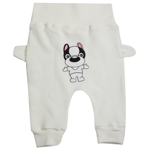 Piękne spodnie w kolorze białym ze słodkim pieskiem to idealna propozycja na letnie wieczory, elastyczna gumka w pasie zapewni komfort w czasie ich użytkowania.