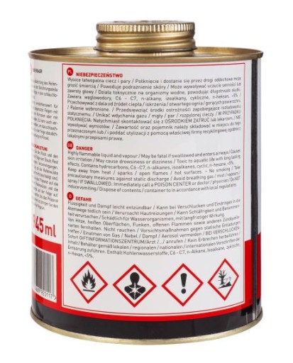 SPOSÓB UŻYCIA: należy oczyścić stopki opony i miejsce osadzenia na obręczy z kurzu, rdzy i innych zanieczyszczeń. Sprawdzić czy stopki opony oraz obręcz nie są uszkodzone. Nanieść warstwę preparatu na suche stopki opon oraz miejsce osadcze na obręczy. Nie czekając na wyschnięcie preparatu zamontować oponę na obręczy.
