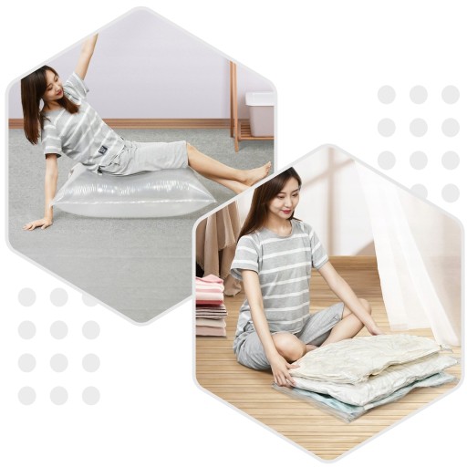 Bez względu na powód, nasz zestaw worków próżniowych na pewno Ci się przyda! Dzięki nim szybko i bez problemu spakujesz nieużywane ubrania i pościel, zyskując więcej miejsca do przechowywania innych przedmiotów.