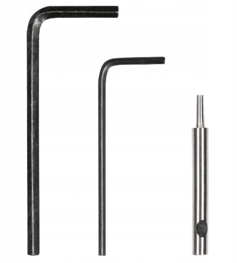 - Akcesoria zawarte w zestawie: 2 klucze sześciokątne, 2 sprężyny zamienne z trzpieniem karbowanym (1 wstępnie zmontowana)