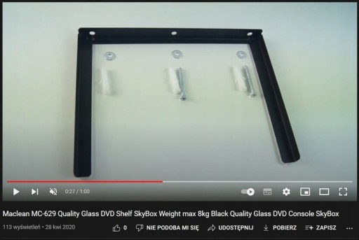 PÓŁKA SZKLANA ŚCIENNA RTV AV DVD DEKODER KONSOLA