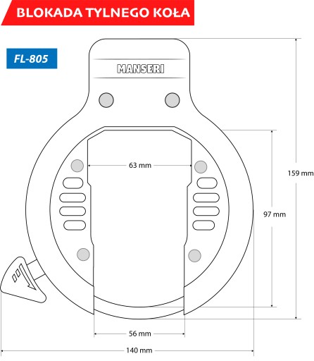 Blokada tylnego koła roweru FL-805A z linką stalową umożliwiającą dodatkowe zapięcie do stałych elementów konstrukcyjnych, latarni, znaków drogowych, drzew itd.