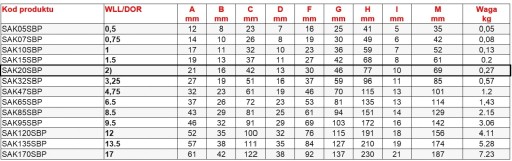 SZAKLA PODŁUŻNA TYP: "U" DOR /WLL 2,0 tony