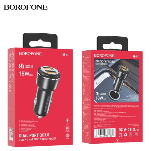 BOROFONE BZ17 Core to niewielkich rozmiarów i minimalistyczna ładowarka samochodowa z dwoma portami USB o mocy 3A każdy i mocy łącznej 15W maksymalnie, przeznaczona zarówno do użytku w samochodach osobowych jak i w ciężarowych. Ładowarka posiada 2 złącza USB-A w standardzie Quick Charge 3.0 / QC3.0 i mocy 18W każdy.