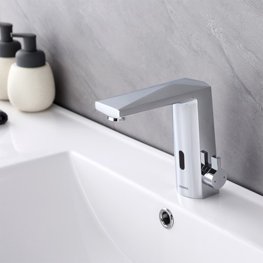 - Inteligentny czujnik: bateria z czujnikiem podczerwieni umożliwia mycie rąk bez dotykania ich, co pozwala uniknąć zakażenia bakteriami i zachować higienę.