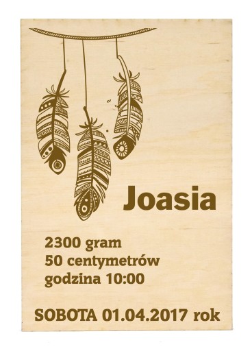 * imię, wagę, wzrost, miejsce, datę i godzinę urodzenia. Do wyboru także także metryczki z imionami rodziców.