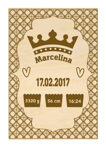 Zawiera wszystkie najważniejsze informacje z dnia narodzin dzidziusia :