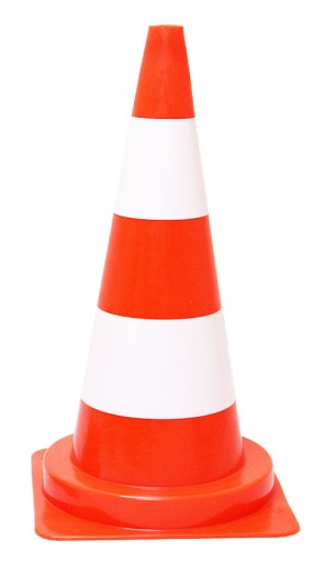 Pachołki wykonane są z miękkiego fluorescencyjnego tworzywa PCV w kolorze pomarańczowym z białymi pasami.