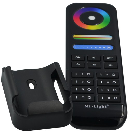 Pilot umożliwia wybór koloru przy pomocy dotykowego tęczowego koła wyboru koloru, płynne ściemnianie i rozjaśnianie, zmianę nasycenia koloru poprzez dodanie światła białego ( przy zastosowaniu odpowiednich taśm LED), wybór jednego z kilku programów dynamicznej zmiany kolorów, przyspieszanie i zwalnianie działania programów dynamicznych, posiada oddzielny przycisk do koloru białego.