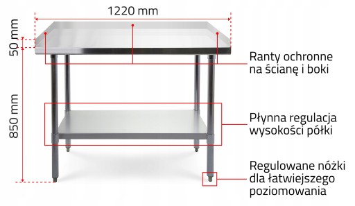 STÓŁ ROBOCZY GASTRONOMICZNY NIERDZEWNY BLAT (+PÓŁKA) + 3 x RANT (WODOSZCZELNY NA ŚCIANĘ I BOKI)