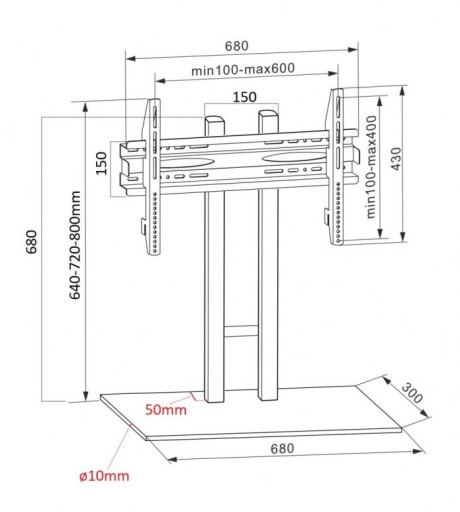 - ✅stojak na TV wyposażony jest w uniwersalny uchwyt w standardzie VESA : 100x100, 100x200, 200x100, 200x200, 300x200, 400x200, 200x300, 200x400, 300x300, 300x400, 400x300, 400x400mm, 500x400, 600x200, 600x300, 600x400 oraz wszystkie pośrednie