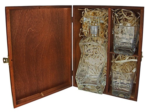KOMPLET Z GRAWEREM PUDEŁKO + KARAFKA + 2 SZKLANKI