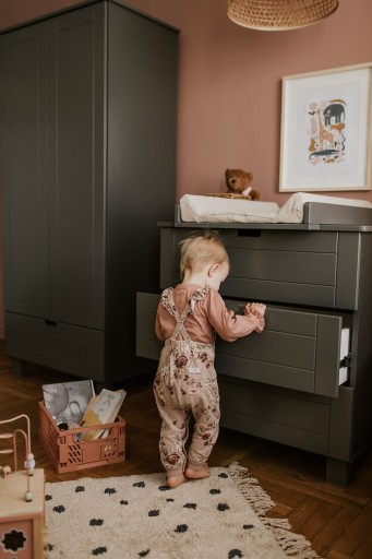 🔅Komoda ma dedykowane miejsce na przewijak, który pomoże w opiece nad dzieckiem już od pierwszych dni jego życia, wtedy, kiedy maluch potrzebuje największej uwagi. Równie dobrze komoda może zostać złożona bez przewijaka, dzięki czemu sprawdzi się także jako mebel dla przedszkolaka czy nastolatka. Dodatkowo, przestronne i głębokie szuflady gwarantują, że w komodzie z przewijakiem umieścisz ubranka i zabawki malucha oraz inne akcesoria niezbędne podczas pielęgnacji dziecka.