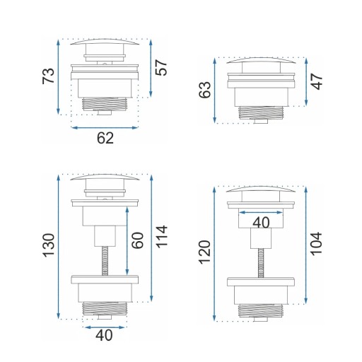 - Wariant korka: uniwersalny - do umywalek z otworem przelewowym, bez otworu przelewowego