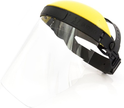 Uniwersalny ochraniacz twarzy i skroni z osłoną z tworzywa, płynna regulacja obwodu głowy oraz możliwość podniesienia przysłony.