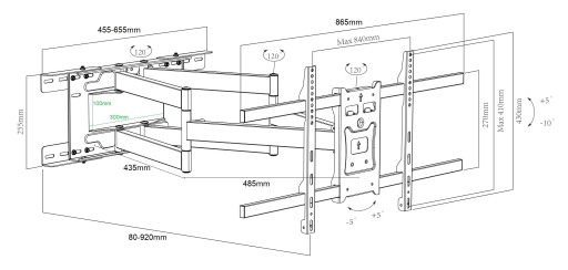 - ✅Pełne 60° obrotu osiągniesz dla telewizora o szerokości aż do 240 cm !