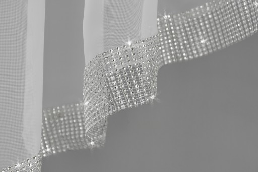 Oryginalny, elegancki komplet wykonany z wysokiej jakości białego woalu. Wykończona bogato zdobioną lamówką z (o szerokości 6 cm) z pięknie połyskującymi kryształkami.