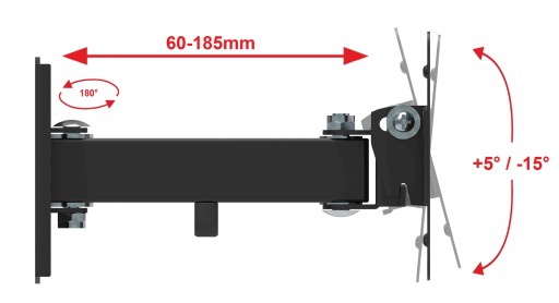 - regulowana odległość od ściany: 60 ~ 185 mm