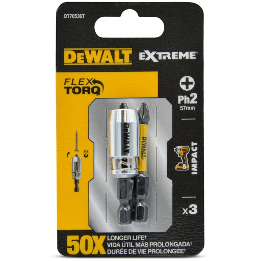 Zestaw bitów udarowych EXTREME TORSION™ PH2 57 mm 2 szt. z uchwytem magnetycznym 1/4" DeWALT