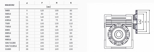 PRZEŁOŻENIE: 1/10 w połączeniu z silnikiem na 1400 obrotów daje 140 obrotów na wyjściu