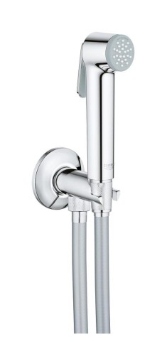 Zwiększ komfort swojej higieny osobistej wraz ze słuchawką bidetową GROHE Tempesta-F Trigger Spray 30. Dzięki niej będziesz mógł cieszyć się funkcjonalnością bidetu nawet w małej łazience. Wyposażona została w specjalny przycisk, który uruchamia przepływ strumienia tylko w momencie jego naciśnięcia, co pozytywnie wpływa na środowisko poprzez mniejsze zużycie wody. Aby otwory słuchawki nie zatykały się osadami z kamienia, pokryliśmy je silikonowym tworzywem SpeedClean. Do prysznica ręcznego dołączyliśmy nieodzowne elementy: wąż prysznicowy i zawór, wraz ze zintegrowanym uchwytem ściennym, który umożliwia na wygodne powieszenie słuchawki. Ciesz się świeżością każdego dnia ze słuchawką bidetową GROHE Tempesta-F Trigger Spray 30.