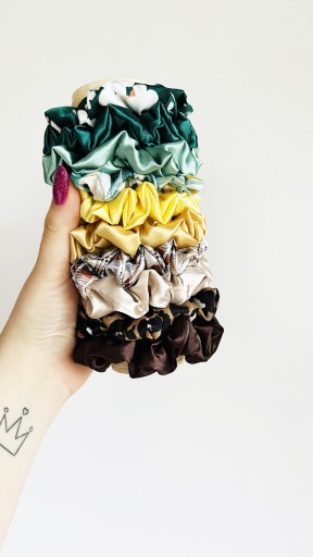 Proponowaną gumkę do włosów scrunchie uszyłam własnoręcznie z wyjątkowo delikatnej satyny syntetycznej. Moje gumki nie szarpią, nie łamią i nie wyrywają włosów, jednocześnie pozwalając Ci na utrzymanie wybranej fryzury w ładzie. Pięknie prezentują się zarówno na włosach, jak i nadgarstku #potwierdzoneinfo