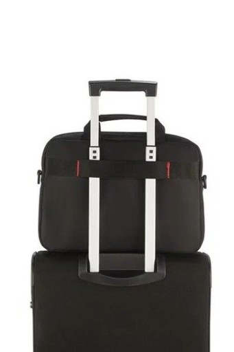 Ta praktyczna teczka na laptopa wyposażona jest w mocowanie na walizkę Smart Sleeve, regulowane i odpinane ramiączka oraz wyściełane górne rączki, oferując pełen komfort podczas podróży.