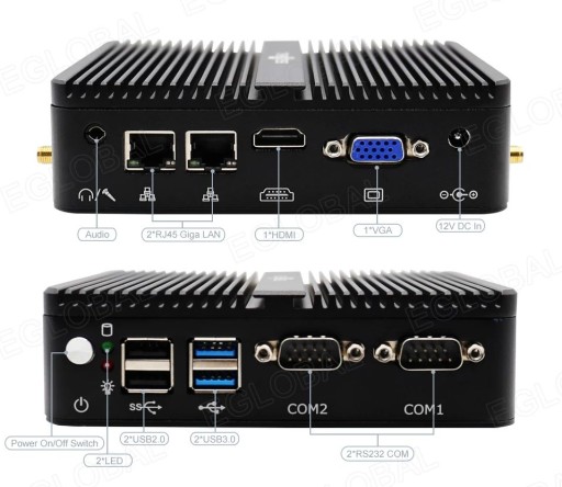 Najmniejszy przemysłowy bezwentylatorowy cichy mini PC z czterordzeniowym procesorem Intel Celeron J4125, 14 nm Gemini Lake, 2,0 GHz, maks. 2,7 GHz (technologia Turbo Boost), cztery wątki, TDP 10W, 4 MB pamięci podręcznej, Intel® UHD Graphics 600, 2*COM (RS232), 2*LAN z obsługą Pfsense
