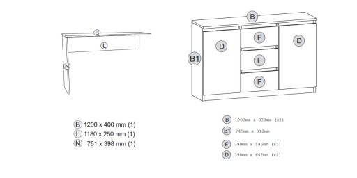 - Ilość paczek mebla: 3
