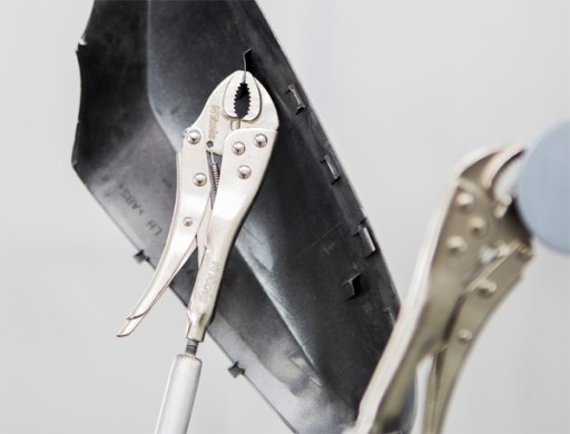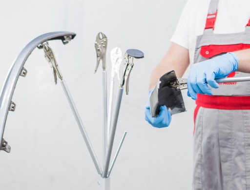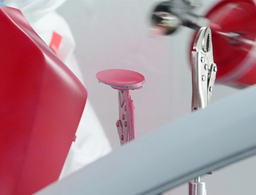 - Na trzecią cześć składają się uchwyty czyli stalowe rurki z przymocowanymi szczypcami zaciskowymi, które służą do solidnego przymocowania lakierowanych elementów.