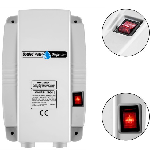 Dystrybutor wody może przepompować do jednego galona wody i pasuje do różnych rodzajów butelek. Zapewniają więcej świeżej wody, wygodę i szybkość.