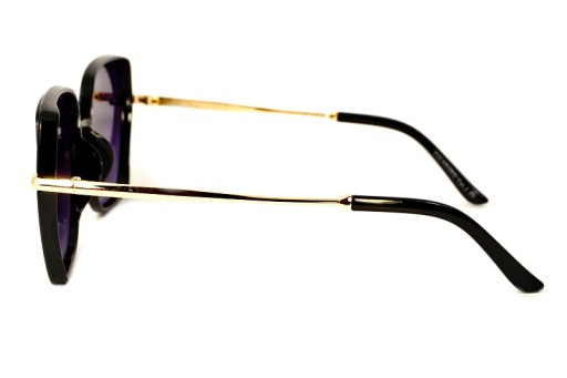 Damskie okulary przeciwsłoneczne Muchy z polaryzacją PolarZONE. Nowa odsłona popularnego fasonu Muchy w eleganckim czarnym kolorze. Oprawki okulary wykonano z trwałego tworzywa, natomiast zauszniki są metalowe z kolorze złotym. Okulary mają polaryzacyjne soczewki w ciemnym kolorze. Okulary o bardzo eleganckim i nowym kształcie. Okulary posiadają pełne zabezpieczenie przeciwsłoneczne czyli filtr ochronny UV-400 o kategorii 3, 100% UV oraz polaryzację.