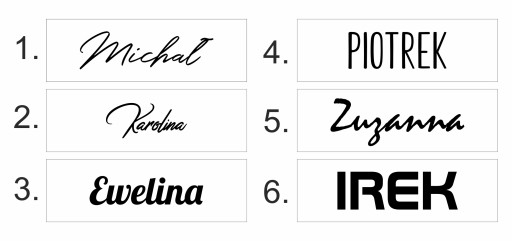 - czcionka: nr 5, imię Mariola