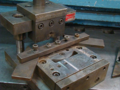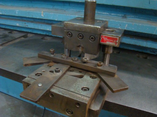 SPRZEDAM WYKROJNIK PRODUKCJI SZWEDZKIEJ DO ZAOKRĄGLANIA NAROŻY BLACH ORAZ PŁASKOWNIKÓW. DWUSTRONNA MATRYCA I STEMPEL. AKTUALNIE JEST USTAWIONY PROMIEŃ R 10mm, PO OBRÓCENIU NARZĘDZI TNĄCYCH OTRZYMUJEMY PROMIEŃ R 50mm NA GŁĘBOKOŚĆ 15mm. CENA 2100 NETTO.