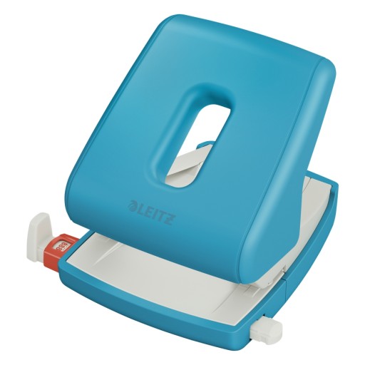 - Blokada dźwigni ułatwia przechowywyanie dziurkacza w pojemniku z szufladami Leitz Cozy 5357 lub pojemniku do przechowywania Leitz Cozy 6126.