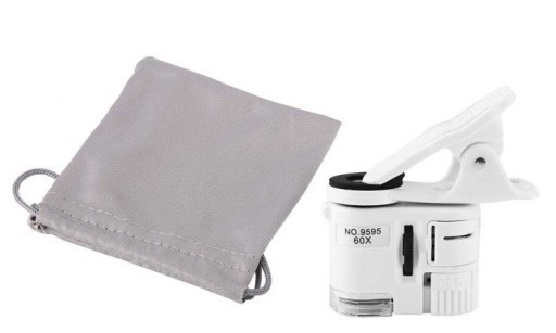 Lupa do telefonu to niewielkich rozmiarów mikroskop z klipsem do telefonu, który posiada powiększenie 60x oraz diodę LED i UV.