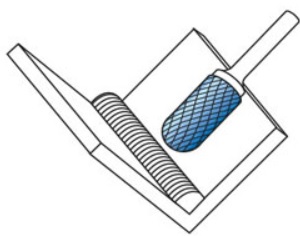 Pilnik obrotowy cylindryczny, z uzębieniem czołowym, do metalu wykonany jest z węglika spiekanego z uzębieniem naprzemianskośnym (krzyżowym), takie uzębienie znacznie zwiększa wydajność skrawania w porównaniu z frezami o uzębieniu zwykłym, widoczne jest to zwłaszcza podczas obróbki materiałów z dużymi prędkościami frezowania. Frez trzpieniowy przeznaczony jest do obróbki stali hartowanej i spawów spawalniczych o wysokiej odporności na rozciąganie. Do prac wykończeniowych do dokładnej obróbki.