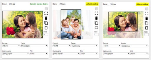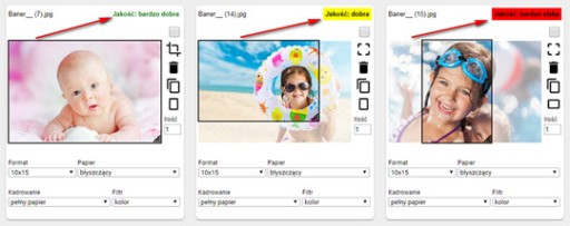 Pomoc w określeniu jakości zdjęć w danym formacie. Program umożliwia klientowi podjęcie decyzji o wykonaniu zdjęć z plików w małej rozdzielczości sugerując ,że dany plik do wybranego formatu zdjęcia może być zbyt mały.