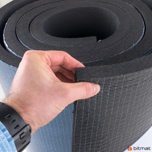 Pianka gumowa K25s firmy Bitmat - dzięki swojej strukturze świetnie izoluje hałasy, tworząc dla nich dodatkową blokadę, co wpływa na zmniejszenie poziomu przedostających się dźwięków.