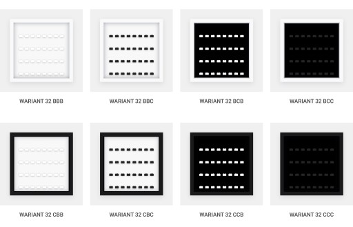 Ze względu na szybki czas wysyłki, w przypadku braku wskazania wariantu, wysyłana będzie ramka widoczna na głównym zdjęciu oferty (32 klocki, biała ramka, czarne tło, białe klocki).