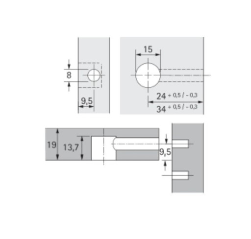ZŁĄCZE MIMOŚRODOWE / MIMOŚRÓD RASTEX 15 DO GRUBOŚCI PŁYTY 15 MM, BEZ KOŁNIERZA