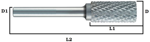 Pilnik obrotowy cylindryczny, z uzębieniem czołowym, do metalu wykonany jest z węglika spiekanego z uzębieniem naprzemianskośnym (krzyżowym), takie uzębienie znacznie zwiększa wydajność skrawania w porównaniu z frezami o uzębieniu zwykłym, widoczne jest to zwłaszcza podczas obróbki materiałów z dużymi prędkościami frezowania. Frez trzpieniowy przeznaczony jest do obróbki stali hartowanej i spawów spawalniczych o wysokiej odporności na rozciąganie. Do prac wykończeniowych do dokładnej obróbki.