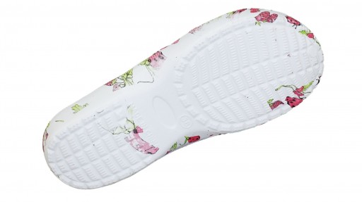 Podeszwa wykonana z pianki EVA (bardzo lekkie) w miejscu gdzie znajduje się stopa wyścielone miękką , wygodną i przyjemną w dotyku pianką.