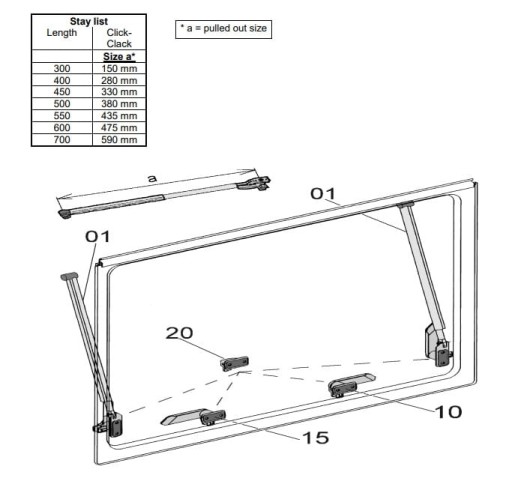 Podnośnik / ramię / siłownik do okna Dometic S6 Klick-Klack