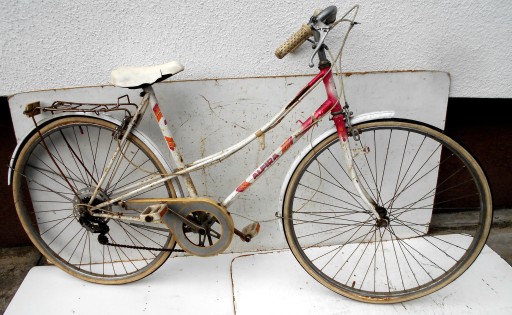Charakter retro z przerzutką i hamulcami klockowymi. Widok jak na foto.