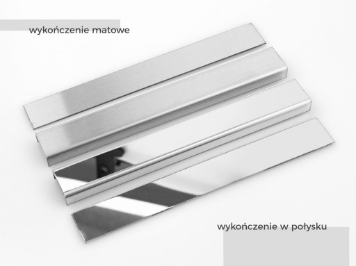 SREBRNA, BŁYSZCZĄCA nierdzewna listwa do spadków, przyścienna LEWA 120 cm